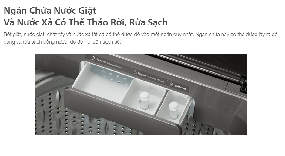 | Công nghệ giặt | Inverter , Giặt thẩm thấu 4 bước, chọn mức nước, thác nước Sparkle Beat, nút Eco 3 bước |