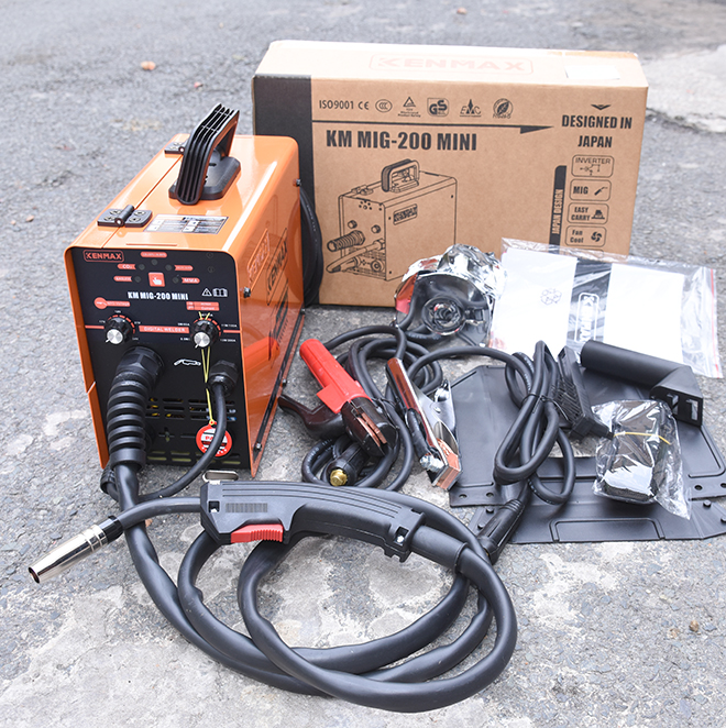 – Phụ kiện đi kèm gồm có kiềm hàn, kẹp mass, súng hàn, cuộn dây 1kg, mặt nạ, dây đeo và búa sỉ